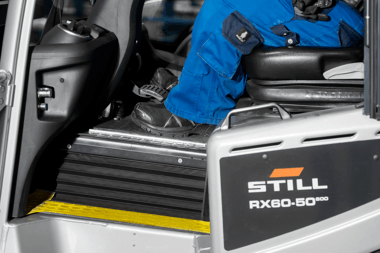 A jelölt STILL RX 60-50/600 elektromos targonca a Voß Edelstahlhandel egyik alacsony termetű munkatársa számára készült. A cél az volt, hogy a jármű ne csupán részmegoldásokat kínáljon, hanem teljes értékű, biztonságos munkavégzést tegyen lehetővé. A tapasztalatok azt mutatták, hogy az elérhető szabványos kiegészítők – például a pedálhosszabbítók – önmagukban nem biztosítanak megfelelő ergonómiát és munkavédelmet egy nagy teljesítményű homlokvillás targoncánál.
